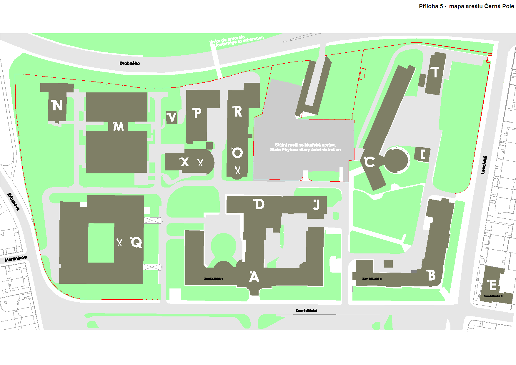 Příloha č. 5 - Schéma - plán objektů v areálu při ulici Zemedělská | zadávací dokumentace |